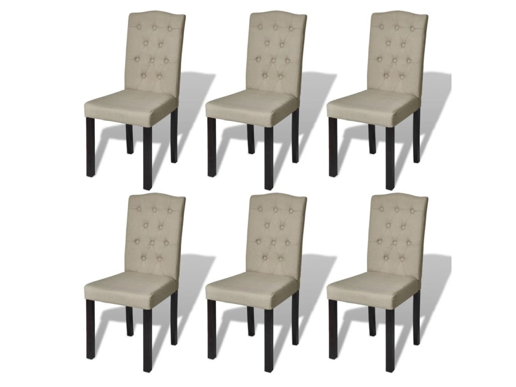 Táto sada 6 štýlových stoličiek má klasický dizajn v štýle chesterfield a vyznačuje sa nenápadnou eleganciou. Pohodlné látkové čalúnenie s ľanovým vzhľadom poskytuje pohodlie pri sedení a bude sa dokonale hodiť do rôznych štýlov zariadenia interiéru.