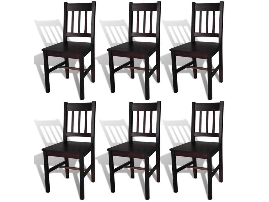 Multidom Jedálenské stoličky 6 ks, tmavohnedé, borovicové drevo