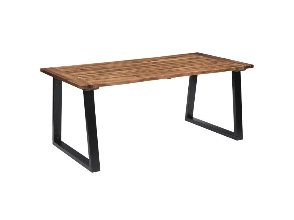 Jedálenský stôl je veľmi pevný a odolný. Vrchná doska je vyrobená z akáciového masívu, ktorý je veľmi trvácny. Nepravidelné hrany, ktoré sledujú prirodzený tvar stromu, ešte viac skrášľujú vzhľad stolíka. Jedinečné kovové nohy s práškovou povrchovou úpravou v tvare písmena U stolíku dodávajú dostatočnú stabilitu a zároveň umocňujú jeho industriálny vzhľad.