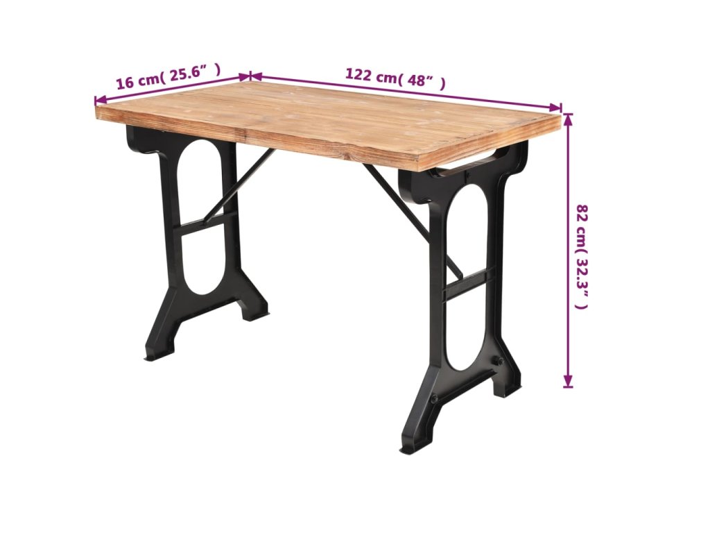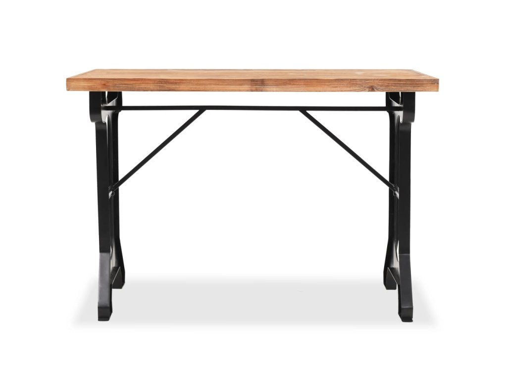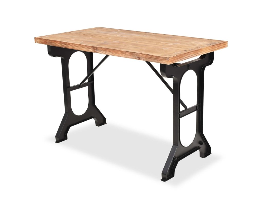 Tento stôl je vyrobený z pevnej ocele a masívneho jedľového dreva. Je stabilný a odolný. Môže mať aj nejaké nedostatky, ktoré neboli úmyselne vytvorené, ale dodávajú stolu starožitný vzhľad a priemyselný šarm.