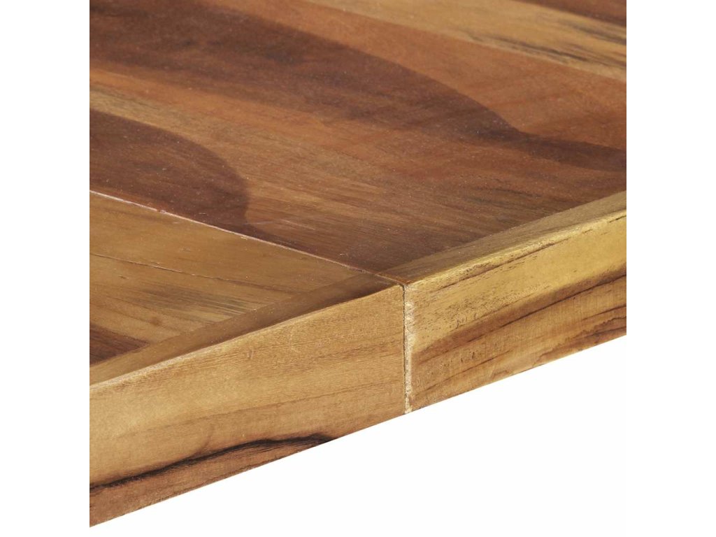 Jedálenský stôl je vyrobený z akáciového a kaučukového masívu, vďaka čomu je stabilný a trvácny. Povrchová úprava mu dodáva prírodnú kresbu a hladkú textúru. Vďaka remeselnému opracovaniu a krásnej textúre dreva je každý kus nábytku jedinečný a trochu odlišný od ostatných. Pevné oceľové nohy s práškovou povrchovou úpravou stolíku dodávajú potrebnú stabilitu.