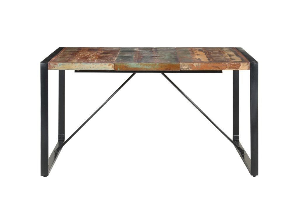 Jedálenský stôl je vyrobený z recyklovaného masívu, ktorý pochádza z trámov, podláh a nosníkov zo starých zbúraných stavieb a pozostáva z rôznych typov dreva, ako napríklad tíkového, tvrdého, tropického či mangového dreva. Recyklované drevo sa preto vyznačuje vlastnosťami týchto typov dreva. Recyklované drevo je staré, zvetrané a usušené, a preto sa nezmršťuje ani neohýba. Pevné oceľové nohy s práškovou povrchovou úpravou stolu dodávajú extra stabilitu.