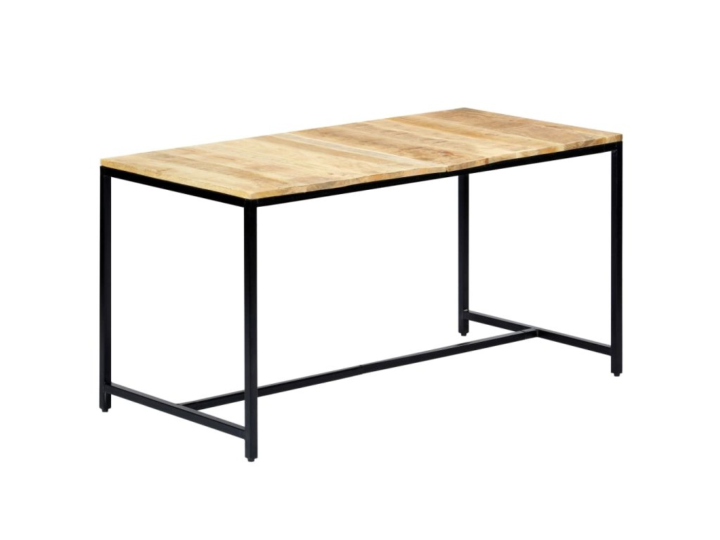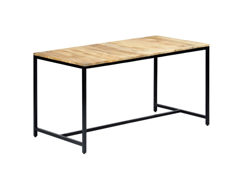 Doska stola je vyrobená zo surového masívneho mangovníkového dreva a dá sa jednoducho sa čistí s vlhkou handričkou. Mangovníkové drevo je husté a pevné drevo, ktoré má na svojom povrchu krásne hnedé a zlaté pruhy a kontúry. Každý krok výrobného procesu sa vykonáva s najväčšou starostlivosťou, či už ide o leštenie alebo lakovanie. Čierne železné nohy s práškovaným povrchom navyše zvyšujú stabilitu a robustnosť stola a tiež mu dodávajú jedinečný priemyselný štýl. Stôl sa dá jednoducho zostaviť.