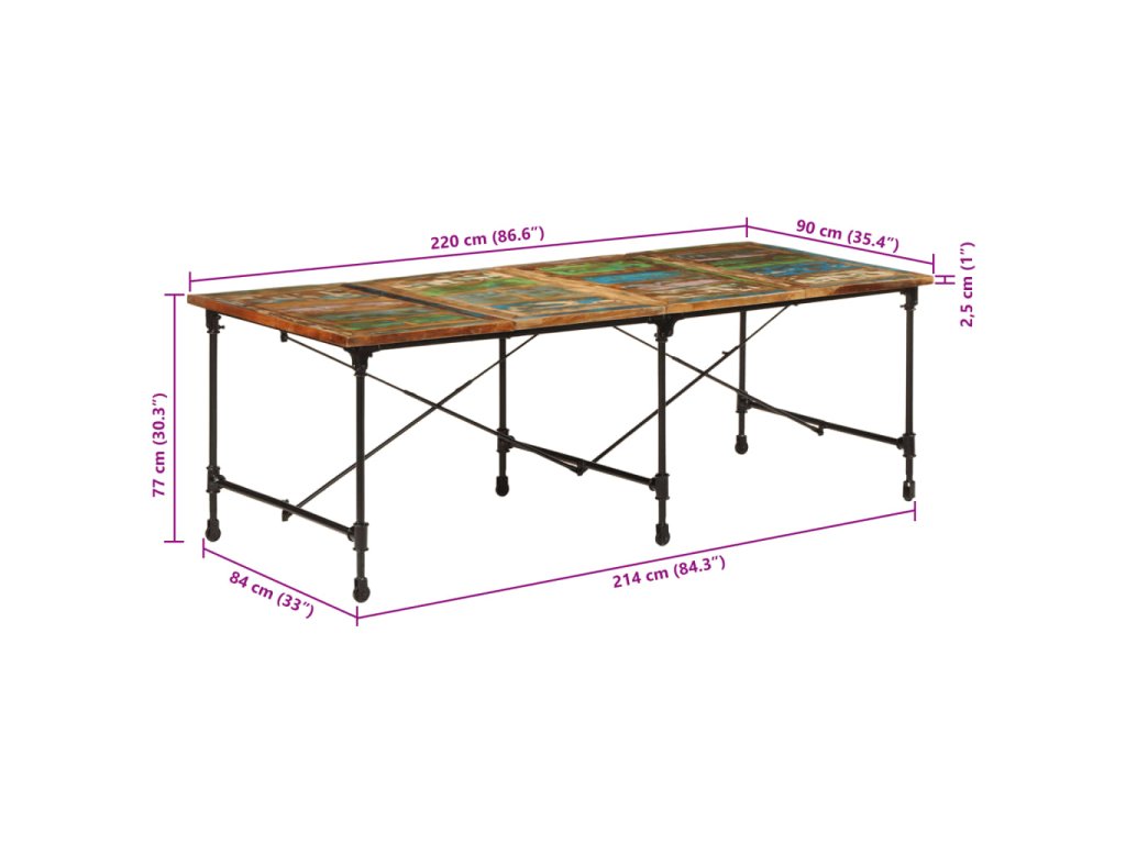 Multidom Jedálenský stôl 220x90x77 cm recyklovaný masív