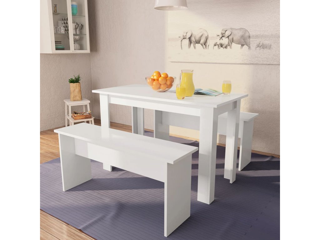 Multidom Jedálenský stôl a lavičky 3 ks, kompozitné drevo, biele