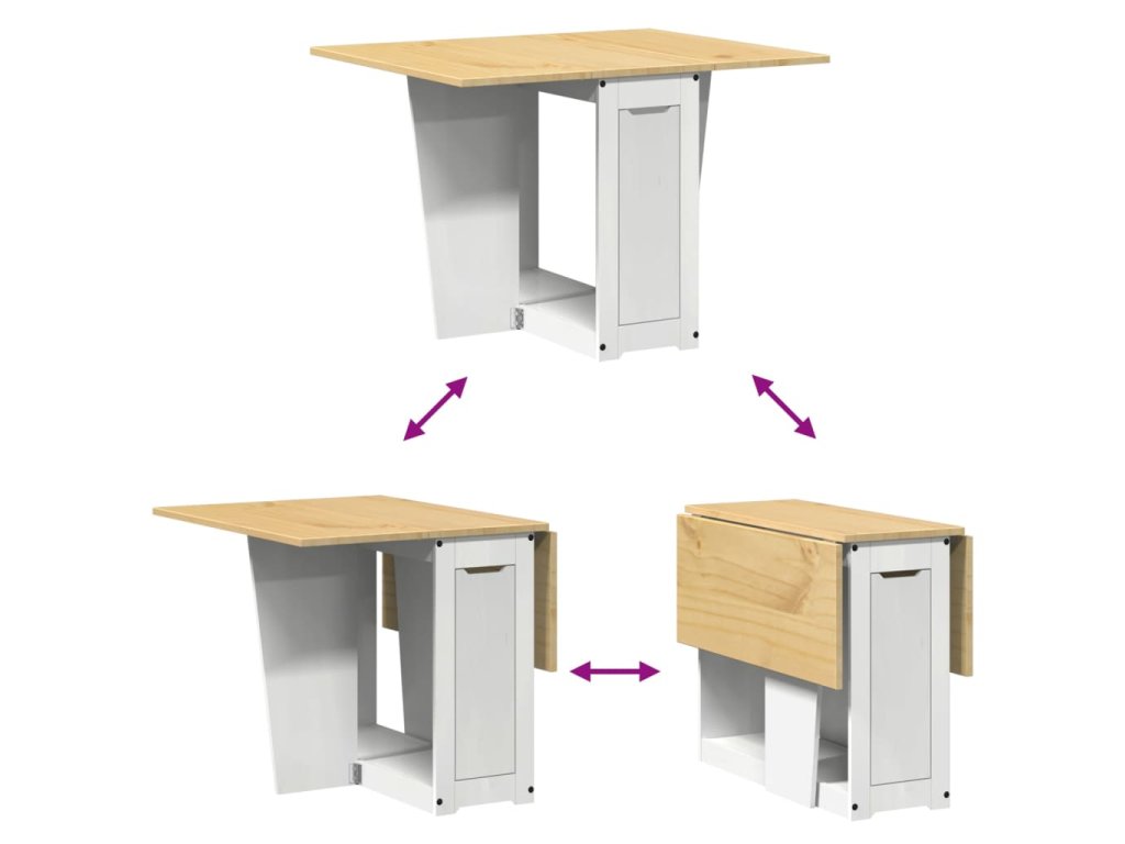 Multidom Jedálenský stôl motýľ skladací Corona biely masívna borovica