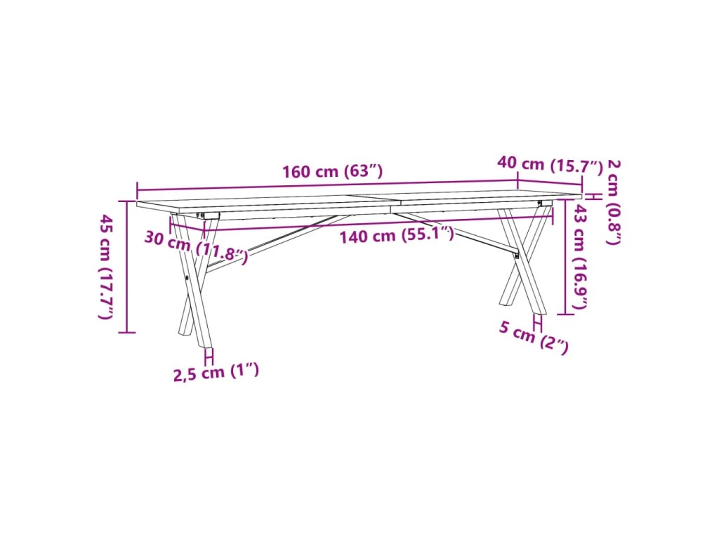 Multidom Jedálenský stolík v tvare X 160x40x45 cm borovica a oceľ
