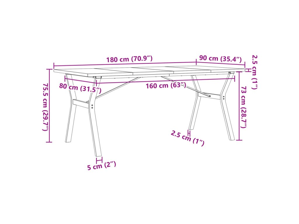 - Pevná a stabilná konštrukcia: Stôl má konštrukciu v tvare písmena Y, ktorá zaručuje stabilitu a bezpečnosť.