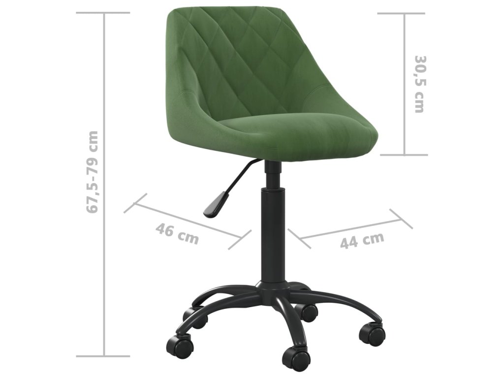Sedadlo kancelárskej stoličky je čalúnené zamatom príjemným na dotyk a je husto polstrované, vďaka čomu je veľmi pohodlné a odolné. Čierny práškovaný oceľový rám poskytuje stoličke vysokú pevnosť a stabilitu. Vďaka plynovému zdvíhaciemu mechanizmu si môžete nastaviť výšku sedenia podľa svojich predstáv. Kolieska sa dajú otáčať o 360 stupňov a tak sa môže kancelárske kreslo voľne otáčať v rôznych smeroch.