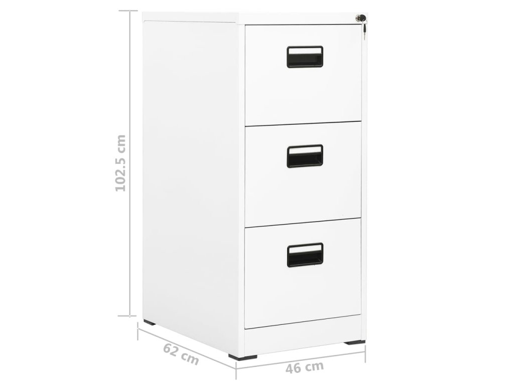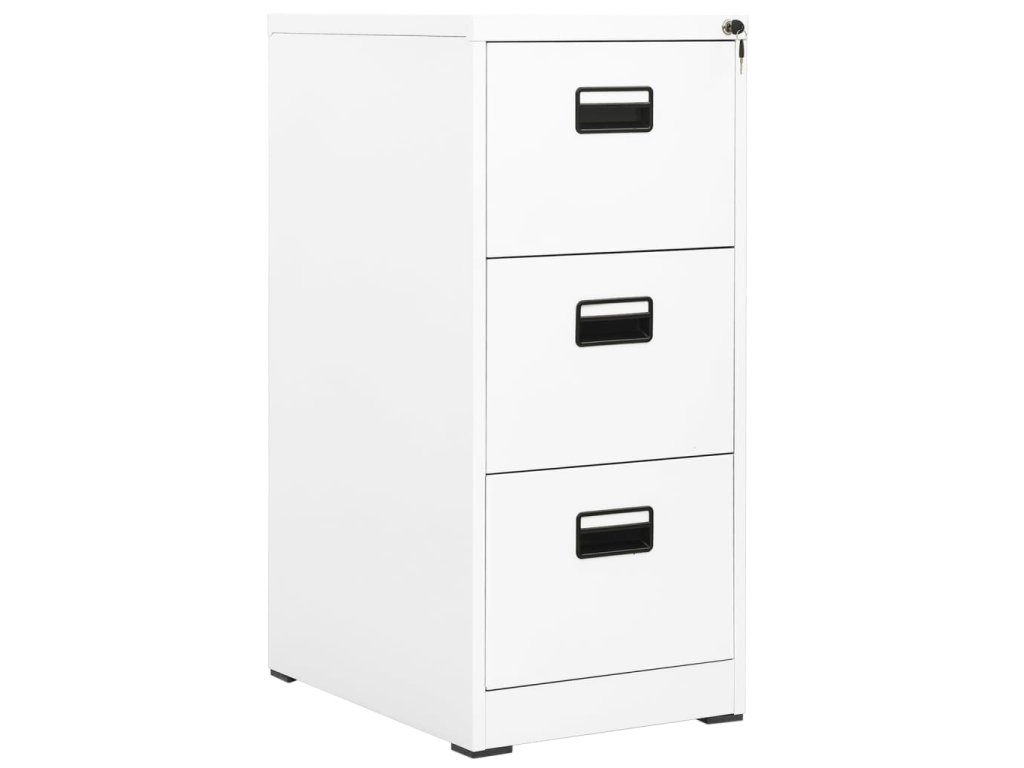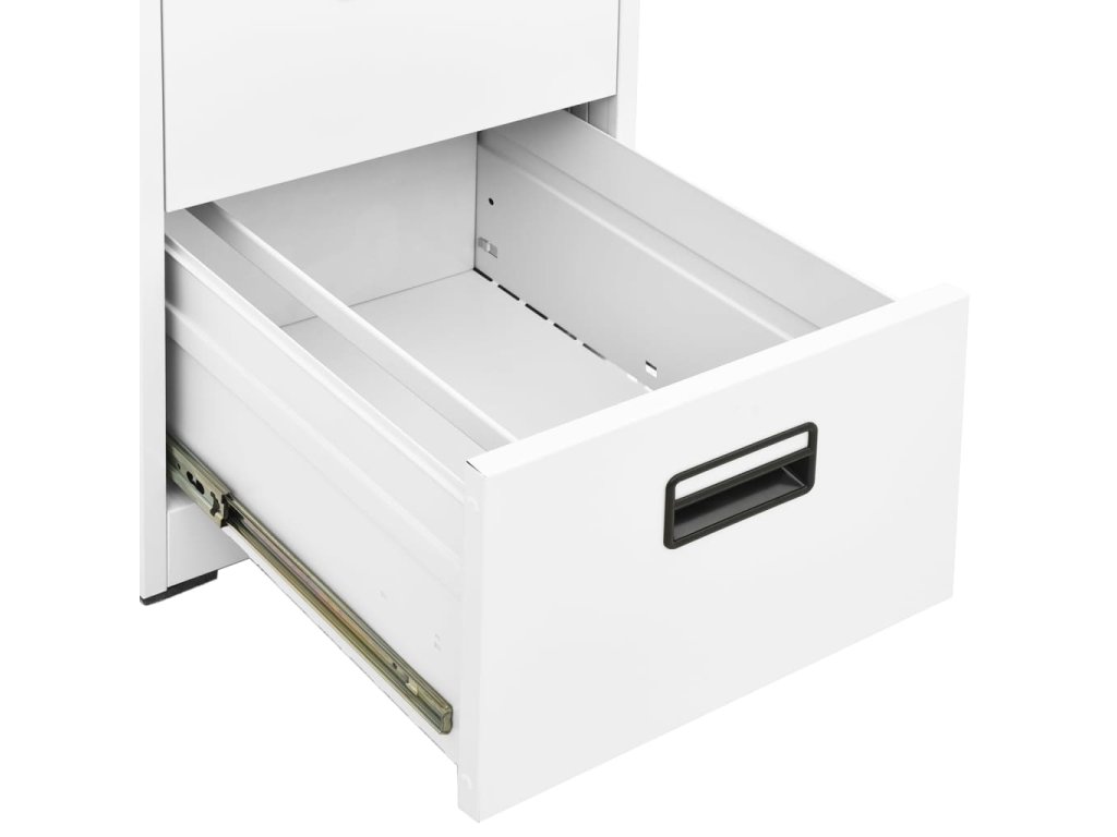 Táto kancelárska skriňa je vyrobená z ocele, takže je odolná a ľahko sa čistí. Vďaka 3 zásuvkám a zámku vám táto kartotéka umožňuje prehľadne triediť spisy do rôznych kategórií a uchovávať ich v bezpečí. Každá zásuvka je vybavená 1 odnímateľnou závesnou lištou, ktorú možno ľubovoľne kombinovať a ukladať do nej zložky oficiálnych formátov a A4. Zásuvky s 3 sekciami s guľôčkovými ložiskami zabezpečujú hladké otváranie a zatváranie aj pri zvýšenej záťaži. Zásuvky sa dajú úplne vysunúť.