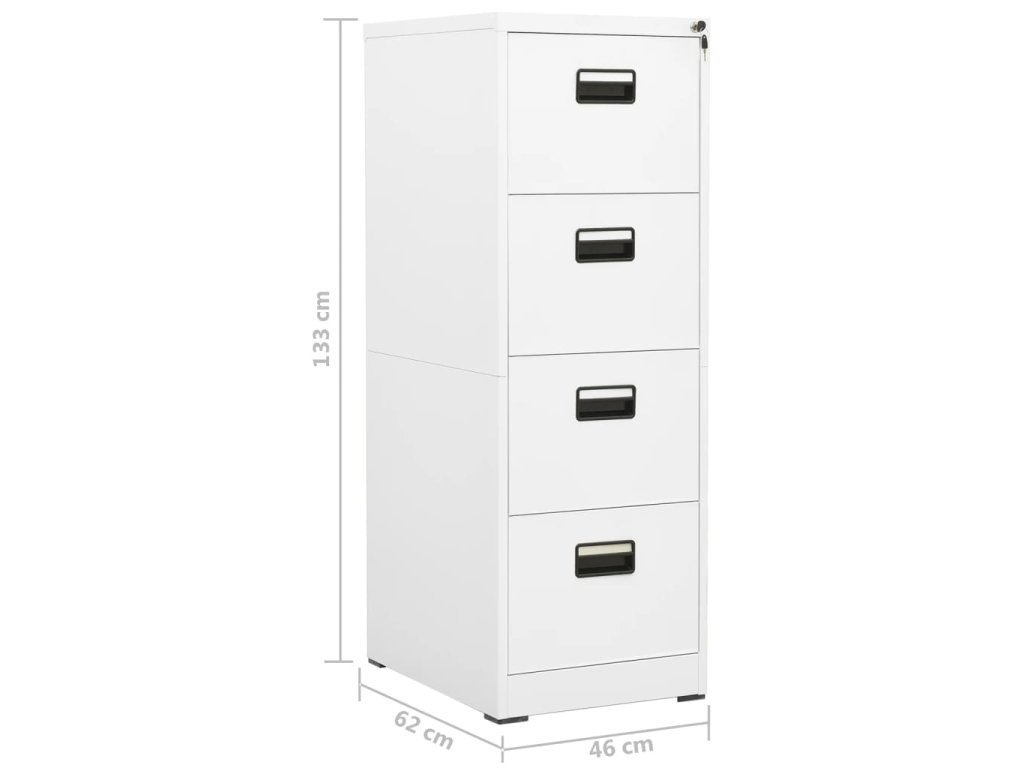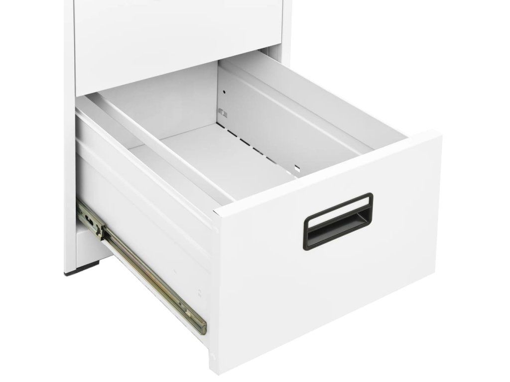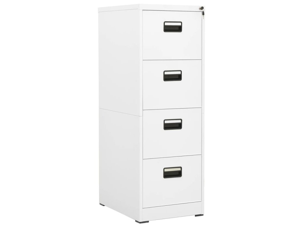 Táto kancelárska skriňa je vyrobená z ocele, takže je odolná a ľahko sa čistí. Vďaka 4 zásuvkám a zámku vám táto kartotéka umožňuje prehľadne triediť spisy do rôznych kategórií a uchovávať ich v bezpečí. Každá zásuvka je vybavená 1 odnímateľnou závesnou lištou, ktorú možno ľubovoľne kombinovať a ukladať do nej zložky oficiálnych formátov a A4. Zásuvky s 3 sekciami s guľôčkovými ložiskami zabezpečujú hladké otváranie a zatváranie aj pri zvýšenej záťaži. Zásuvky sa dajú úplne vysunúť.