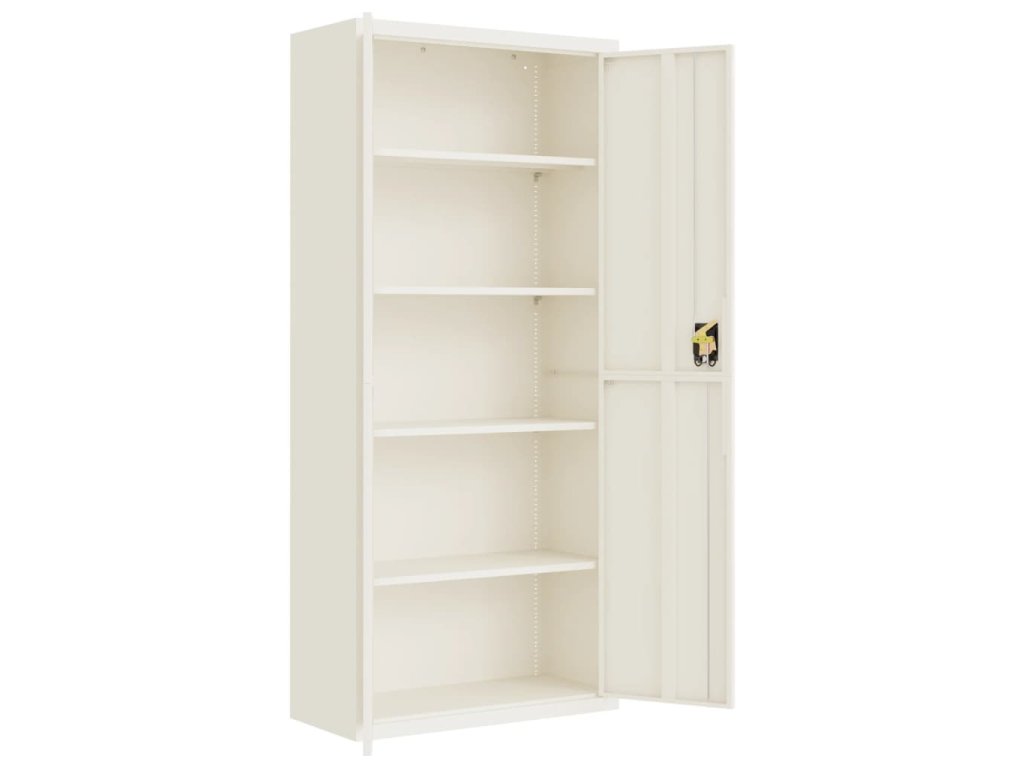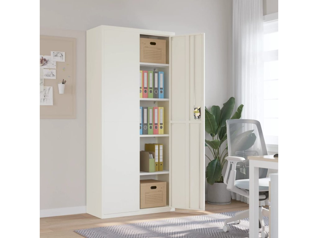 - Nastaviteľné police: Úložná skrinka obsahuje 4 nastaviteľné police, ktoré vám umožňujú prehľadne triediť šanóny do rôznych kategórií.