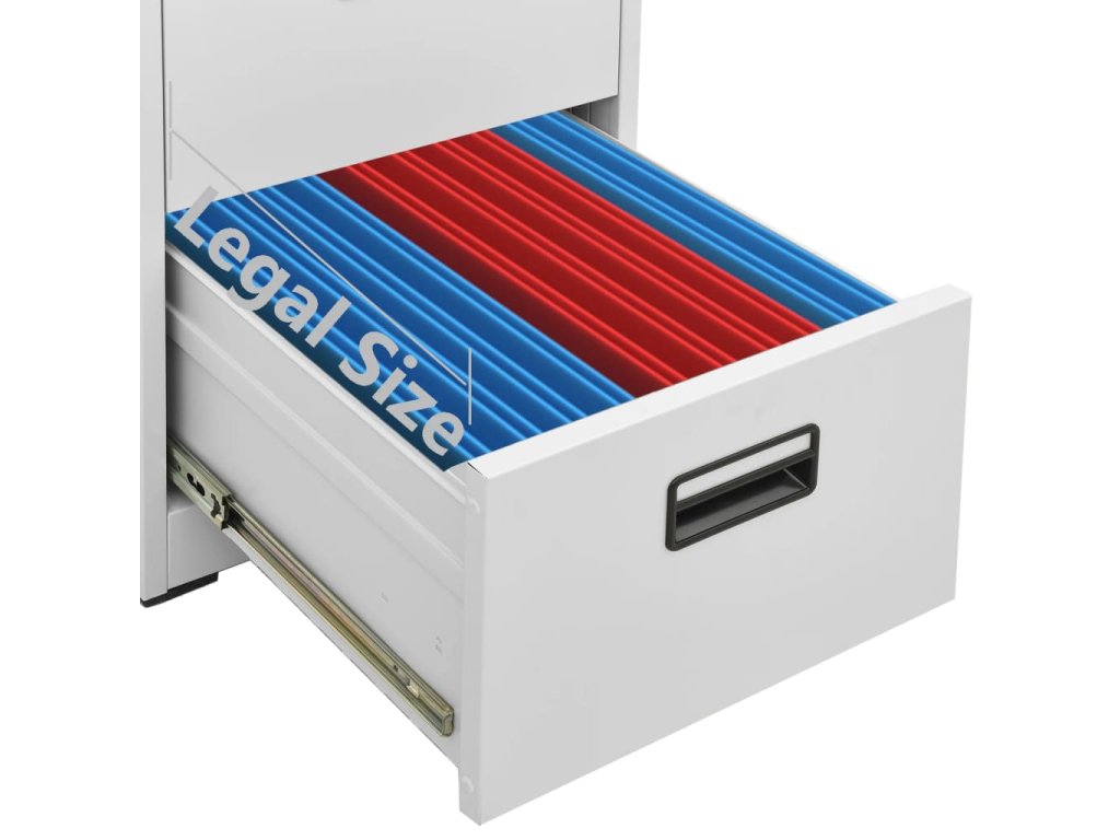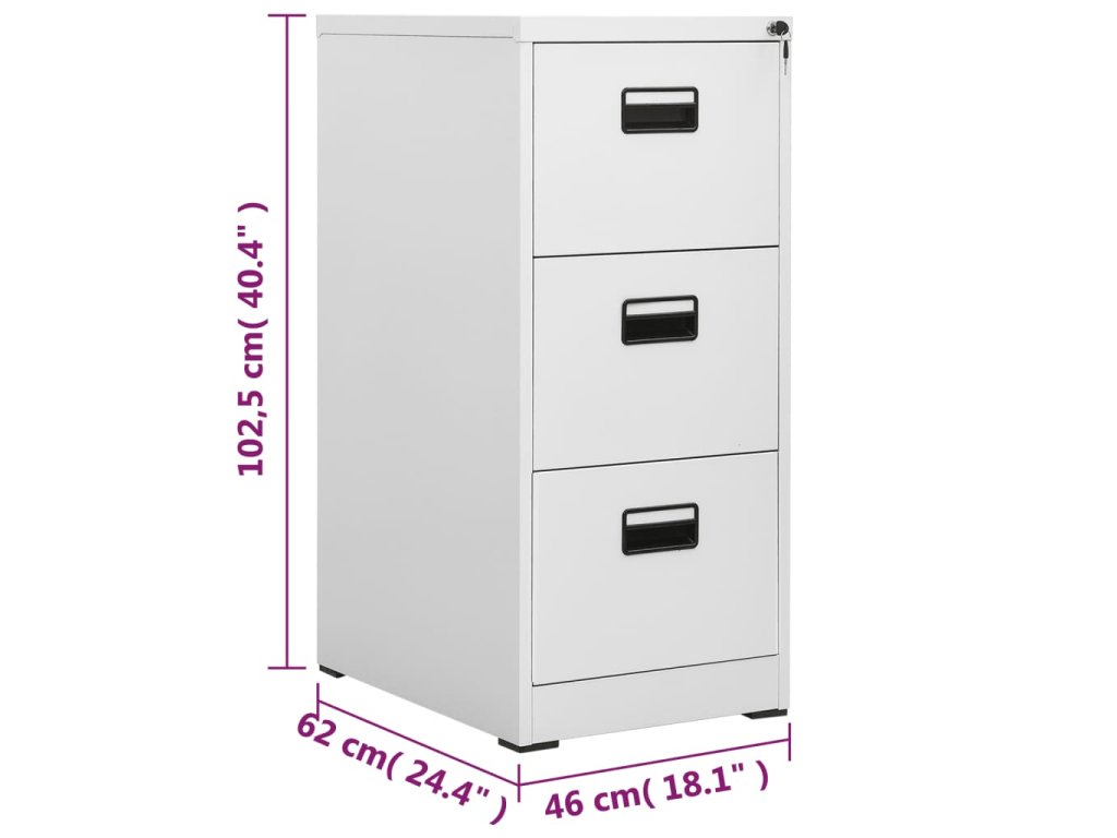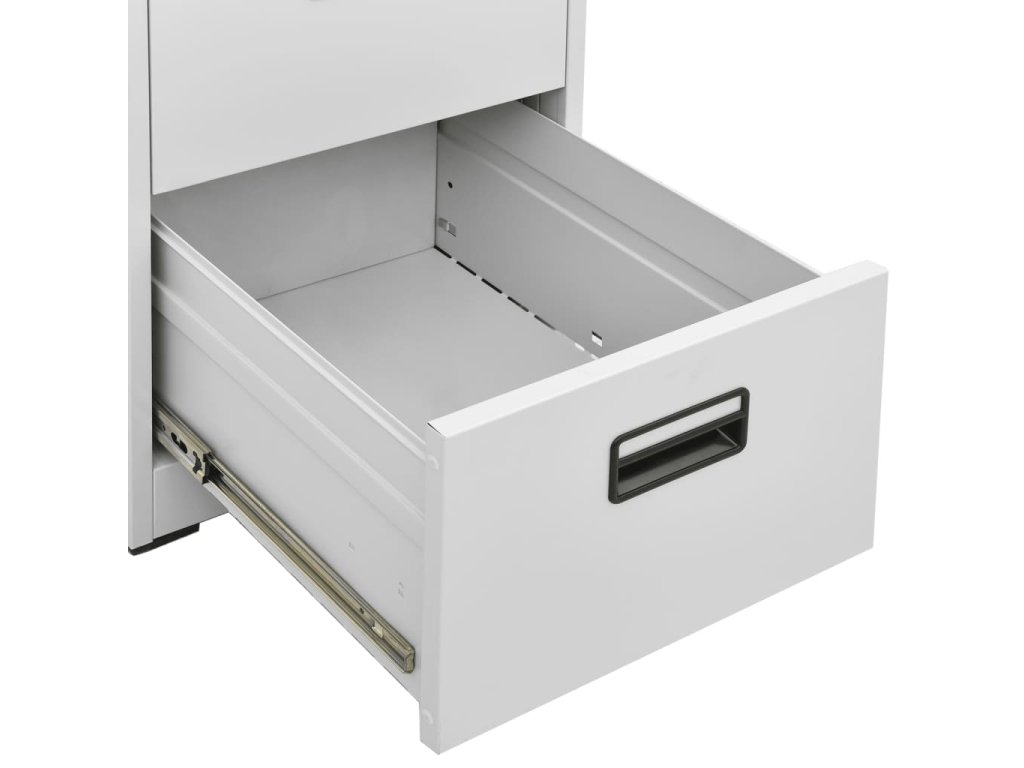Táto kancelárska skriňa je vyrobená z ocele, takže je odolná a ľahko sa čistí. Vďaka 3 zásuvkám a zámku vám táto kartotéka umožňuje prehľadne triediť spisy do rôznych kategórií a uchovávať ich v bezpečí. Zásuvky s 3 sekciami s guľôčkovými ložiskami zabezpečujú hladké otváranie a zatváranie aj pri zvýšenej záťaži. Zásuvky sa dajú úplne vysunúť.