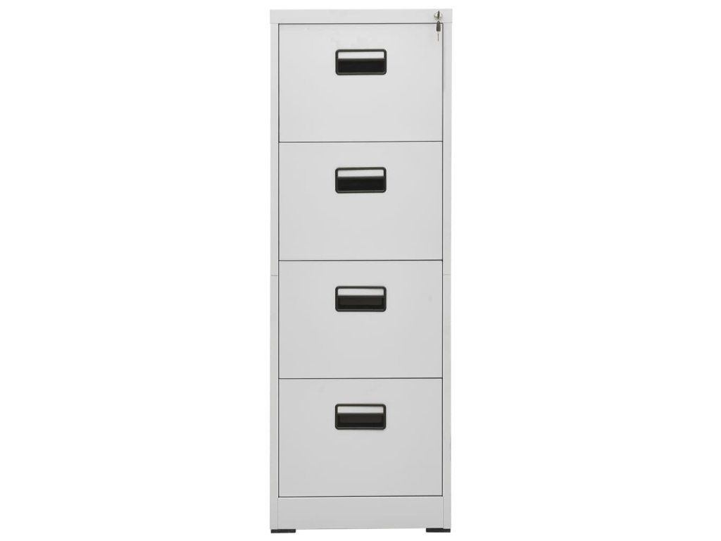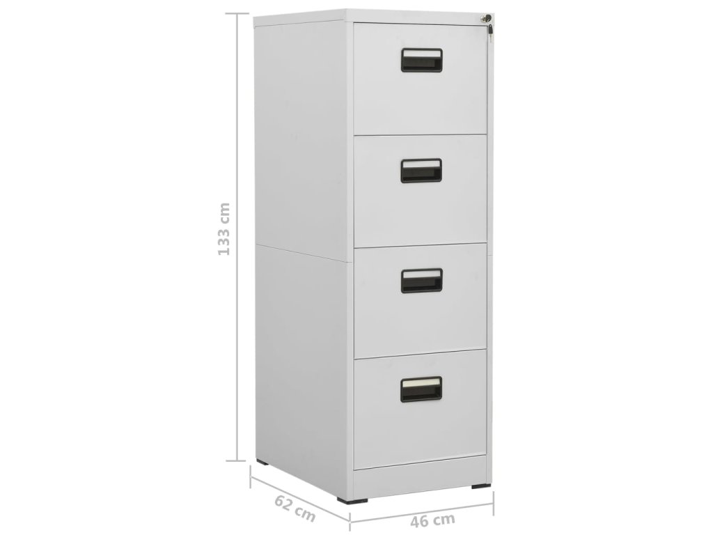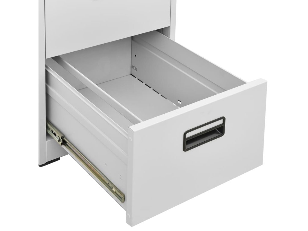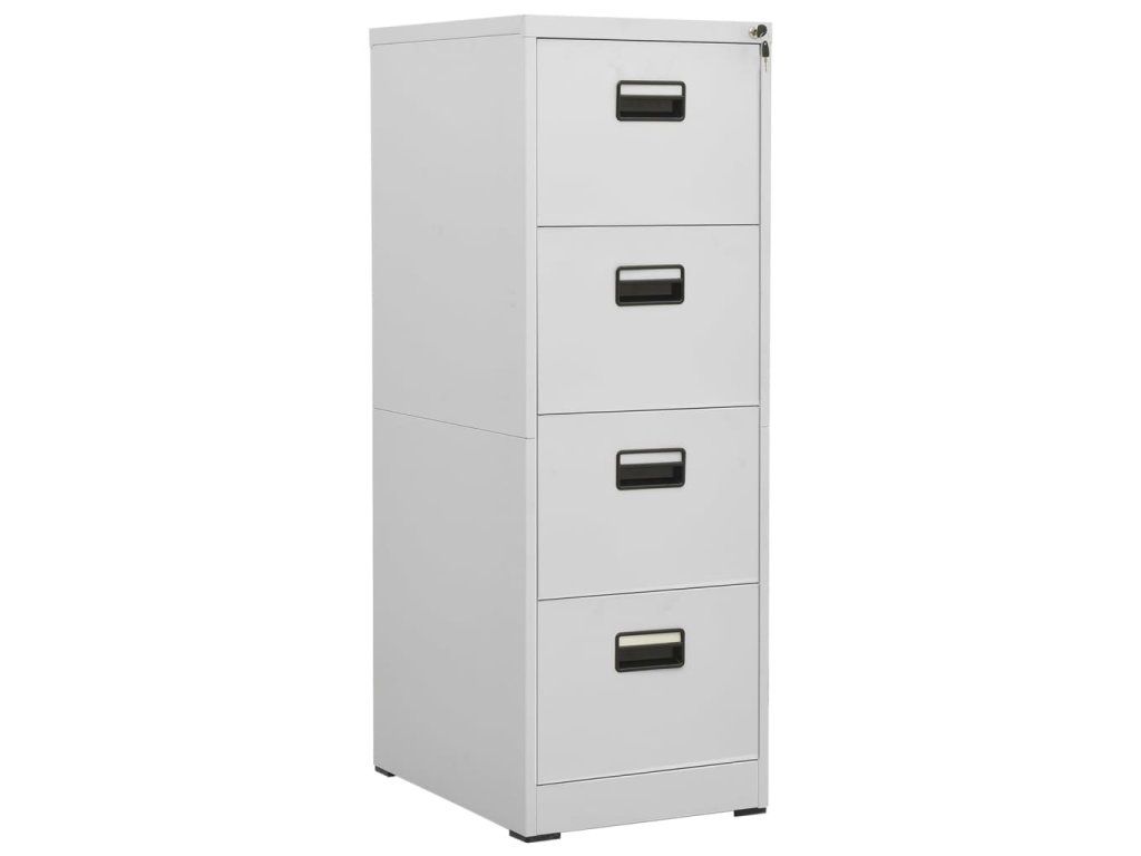 Táto kancelárska skriňa je vyrobená z ocele, takže je odolná a ľahko sa čistí. Vďaka 4 zásuvkám a zámku vám táto kartotéka umožňuje prehľadne triediť spisy do rôznych kategórií a uchovávať ich v bezpečí. Každá zásuvka je vybavená 1 odnímateľnou závesnou lištou, ktorú možno ľubovoľne kombinovať a ukladať do nej zložky oficiálnych formátov a A4. Zásuvky s 3 sekciami s guľôčkovými ložiskami zabezpečujú hladké otváranie a zatváranie aj pri zvýšenej záťaži. Zásuvky sa dajú úplne vysunúť.