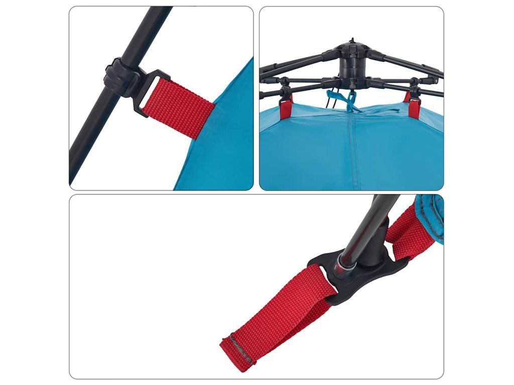 - Rýchloupínací systém: Pomocou rýchloupínacieho systému stan postavíte naozaj jednoducho! Stan položte a predĺžte vopred zmontované tyče, kým nezapadnú na miesto. Teraz je všetko pripravené!