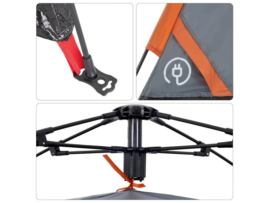 - Rýchloupínací systém: Pomocou rýchloupínacieho systému stan postavíte naozaj jednoducho! Stan položte a predĺžte vopred zmontované tyče, kým nezapadnú na miesto. Teraz je všetko pripravené!