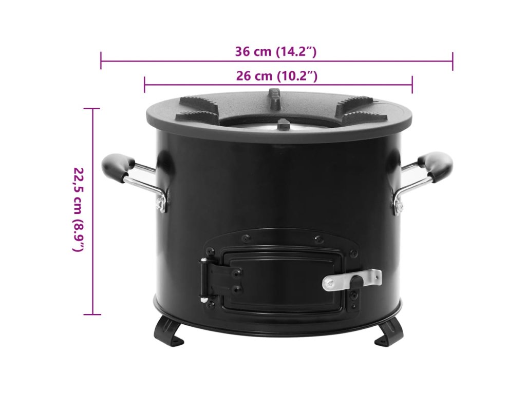 Multidom Kempingový varič na drevo čierny 36x26x22,5 cm kov