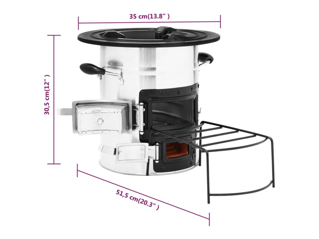 Multidom Kempingový varič na drevo strieborný 51,5x35x30,5 cm oceľ