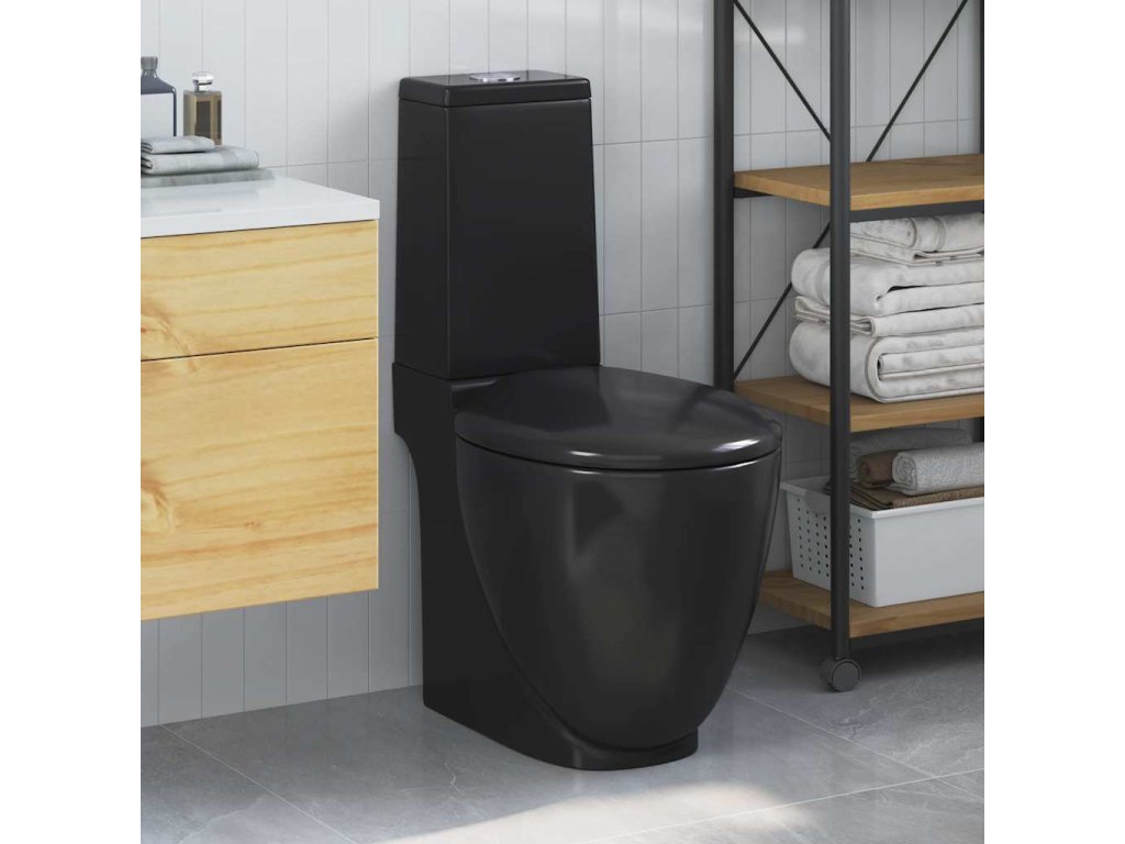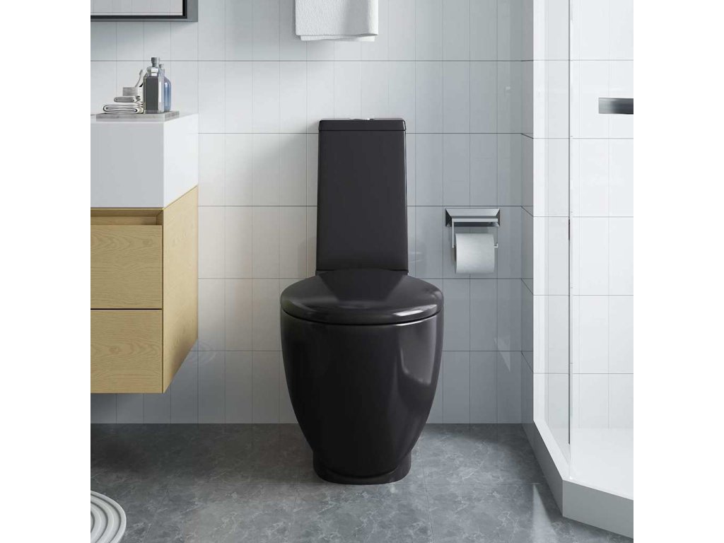 Multidom Keramická toaleta/WC do kúpeľne, okrúhla, spodný odtok, čierna