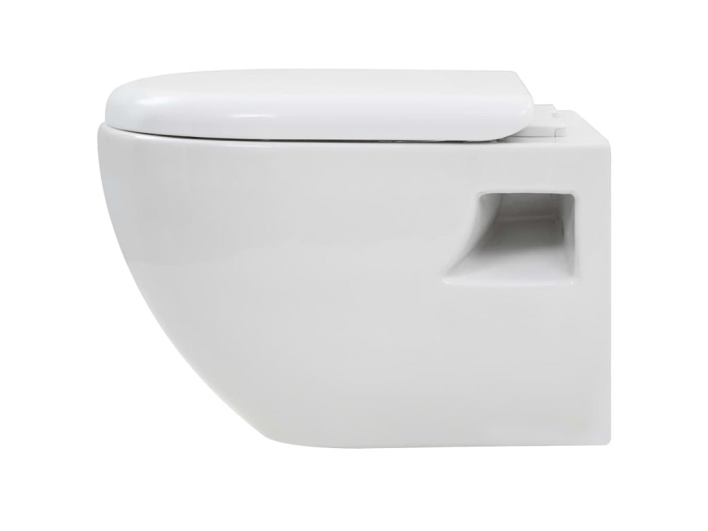 Toaleta je vybavená systémom jemného zatvárania, ktorý umožňuje automatické a jemné zatváranie veka jednoduchým dotykom prsta. Táto závesná toaleta pozostáva z keramickej záchodovej misy a poklopu nenáročného na údržbu. Ľahko sa čistí. Dodávaná skrytá splachovacia nádržka má dvojitý systém splachovania (menšie tlačidlo na 3 - 4,5 l a väčšie na 6 - 9 l). Nádržka na vodu z HDPE má objem 11 l a je odolná voči korózii a teplotám.