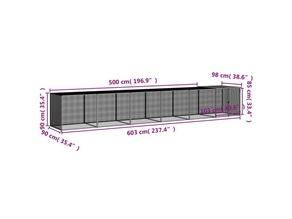 Multidom Klietka pre kurčatá strecha bledosivá 603x98x90 cm poz. oceľ