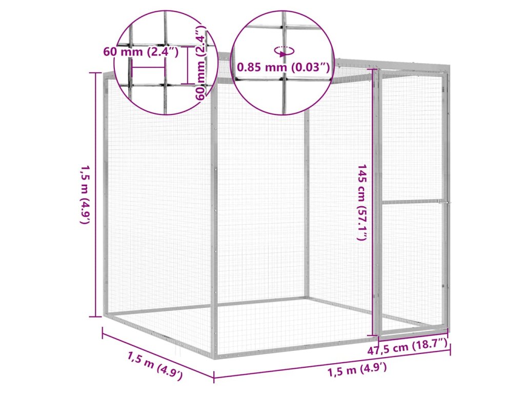 Multidom Klietka pre mačky 1,5x1,5x1,5 m, pozinkovaná oceľ