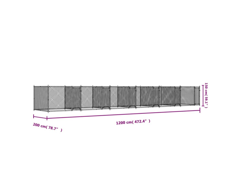 Multidom Klietka pre psa s dvierkami šedá 12x2x1,5 m pozinkovaná oceľ