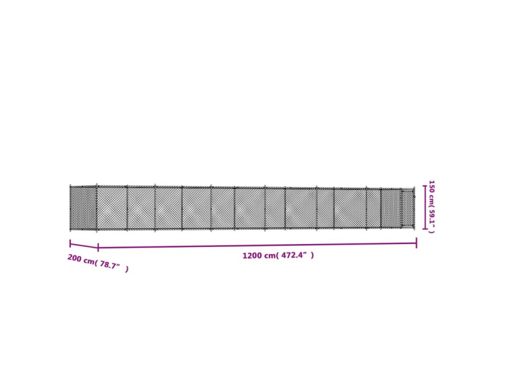 Multidom Klietka pre psa s dvierkami šedá 12x2x1,5 m pozinkovaná oceľ