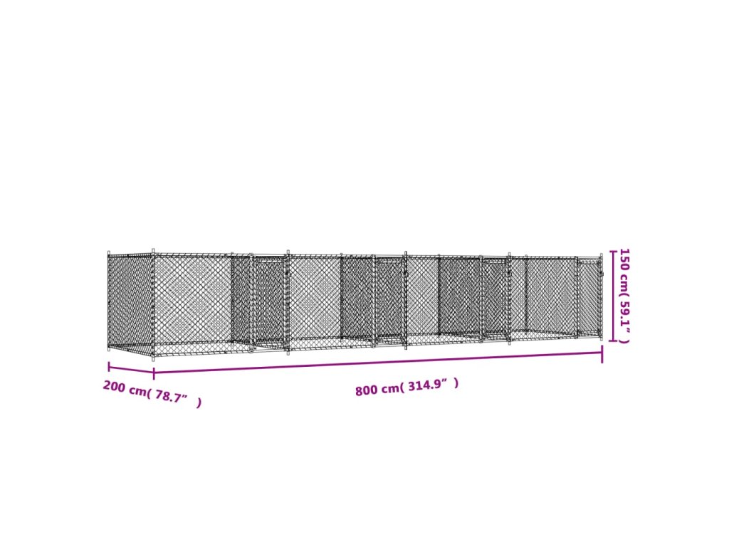 Multidom Klietka pre psa s dvierkami šedá 8x2x1,5 m pozinkovaná oceľ