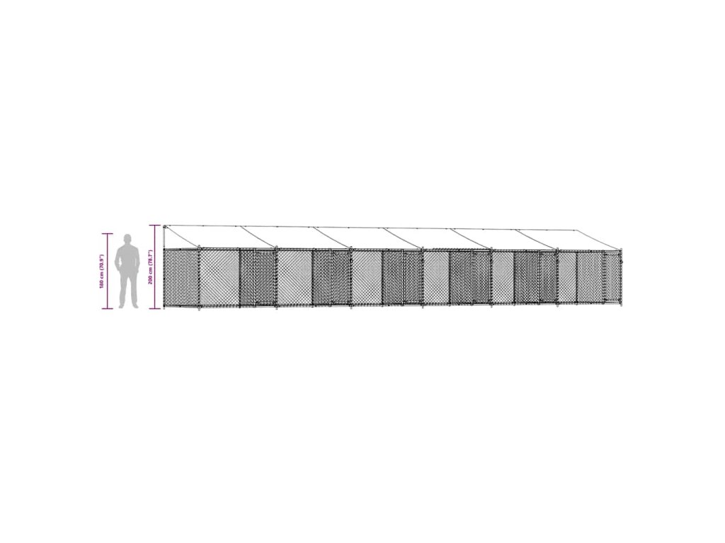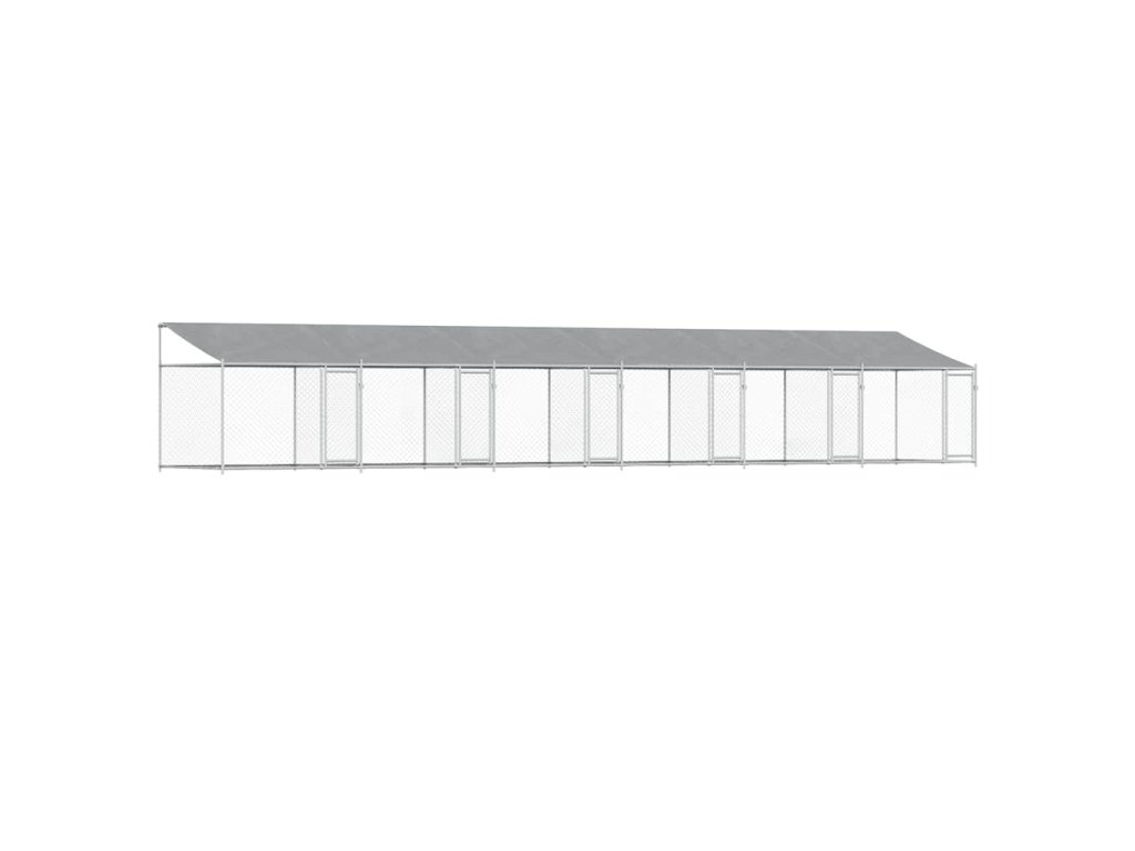 Multidom Klietka pre psa so strechou a dverami sivá 12x2x2m pozink. oceľ