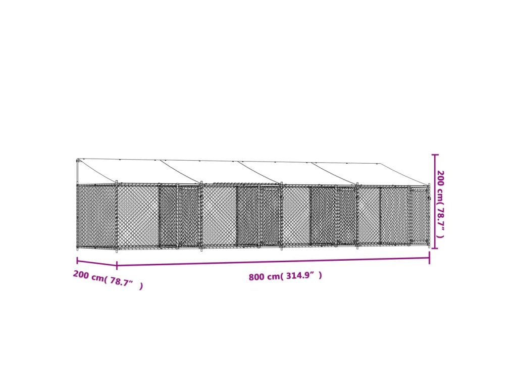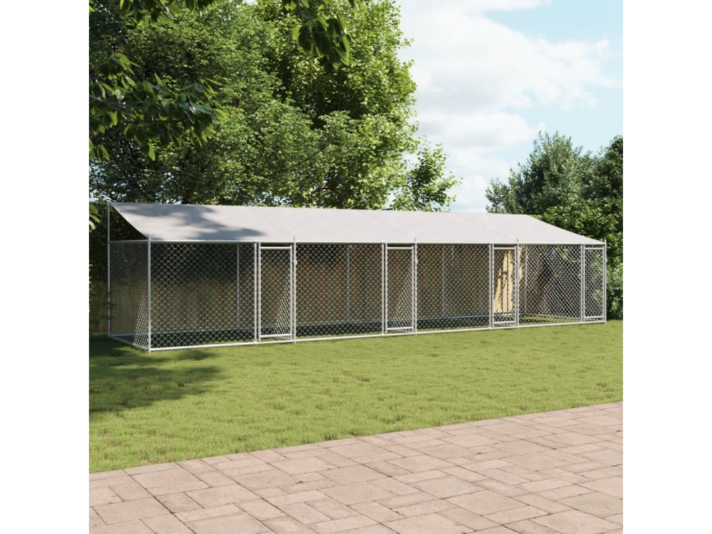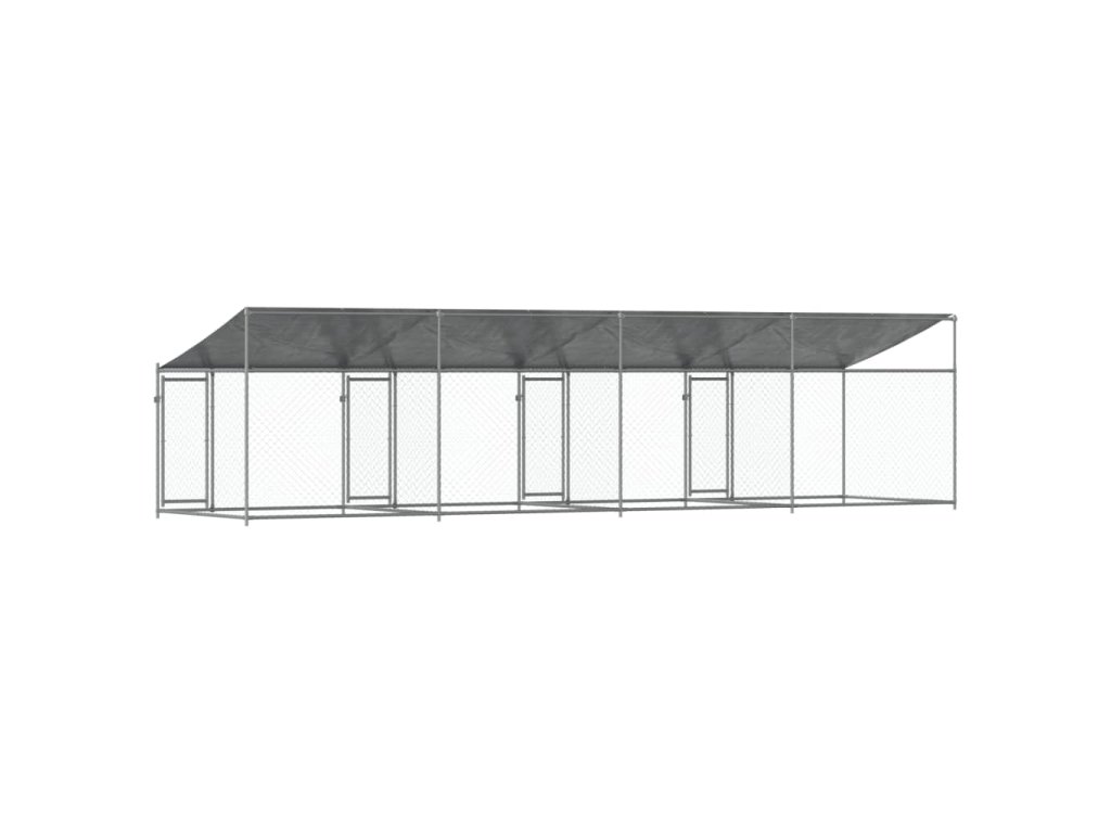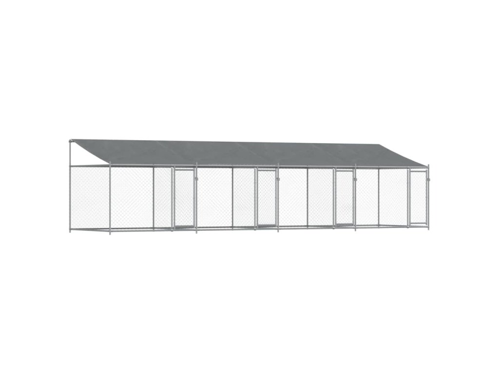 Multidom Klietka pre psa so strechou a dverami sivá 8x2x2 m pozink. oceľ