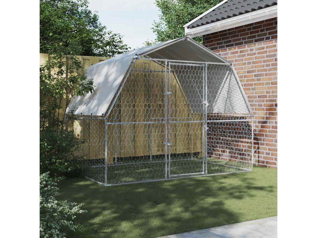 Multidom Klietka pre psy+strecha a dvierka, strieborná, pozinkovaná oceľ