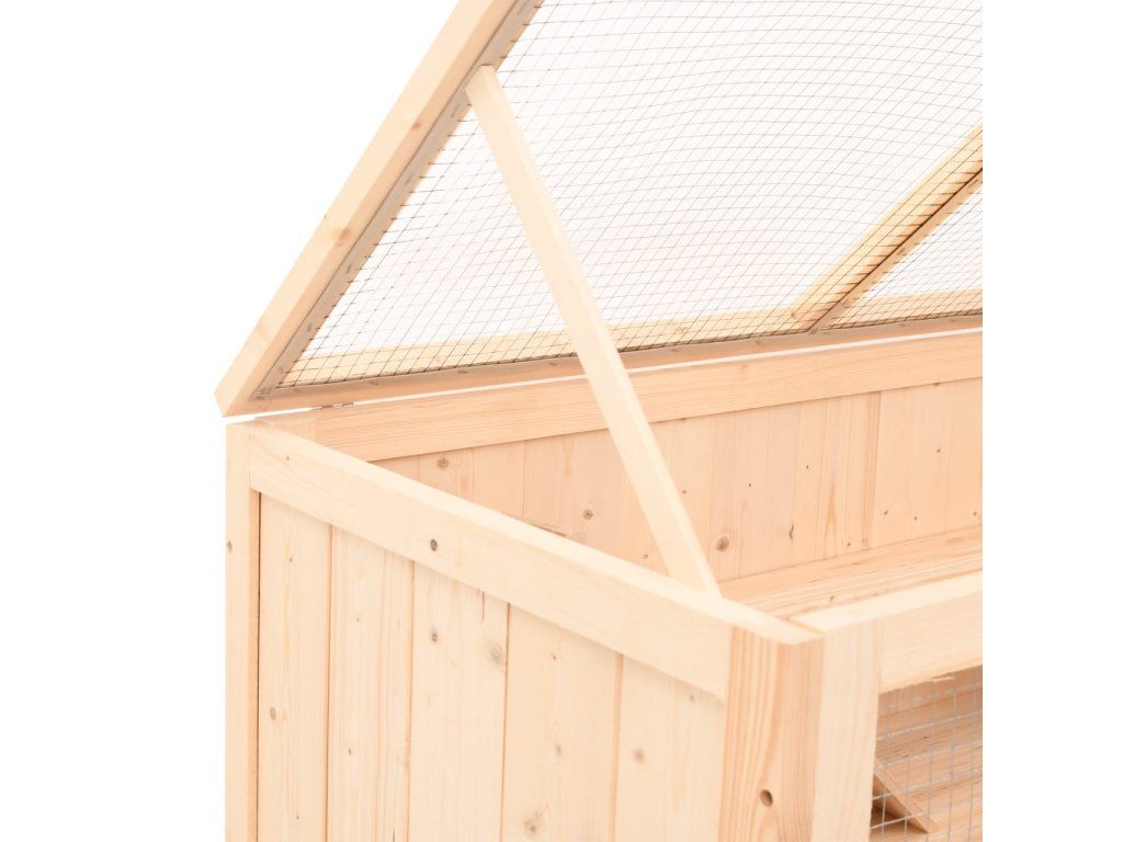 - Dizajn z drôteného pletiva: Otvárateľná strecha je navrhnutá s drôteným pletivom pre dobré vetranie a jednoduchý vstup. Drôtené pletivo na prednej strane vám tiež umožňuje sledovať, ako sa vaši chlpatí kamaráti hrajú a relaxujú v ich novom domove.