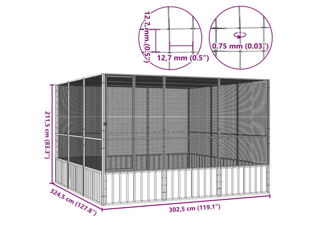 Multidom Klietka pre vtáky antracit 302,5x324,5x211,5cm pozinkovaná oceľ