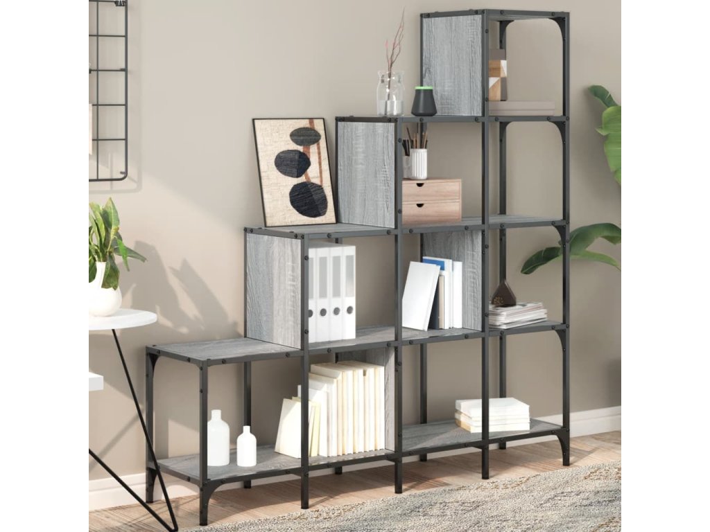 Multidom Knižnica, sivá sonoma 122x30x132 cm, kompozitné drevo a kov