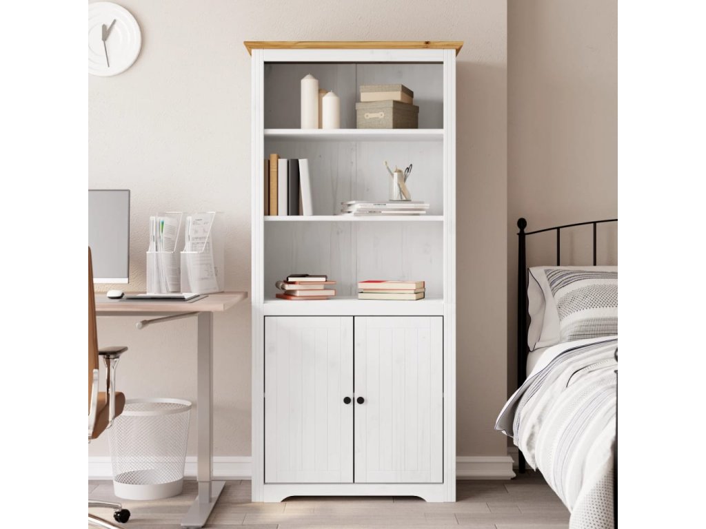 Multidom Knižnica BODO biela a hnedá 82x40x173 cm masívna borovica
