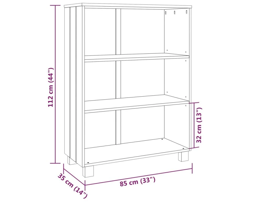 Knižnica je vyrobená z masívneho borovicového dreva, vďaka čomu je stabilná a pevná. Knižnica má 3 police, ktoré poskytujú dostatok úložného priestoru na úhľadne usporiadané zbierky kníh, časopisov a dokumentov. Pevná doska je ideálna na vystavenie dekoratívnych predmetov, fotorámikov a rastlín v črepníkoch.