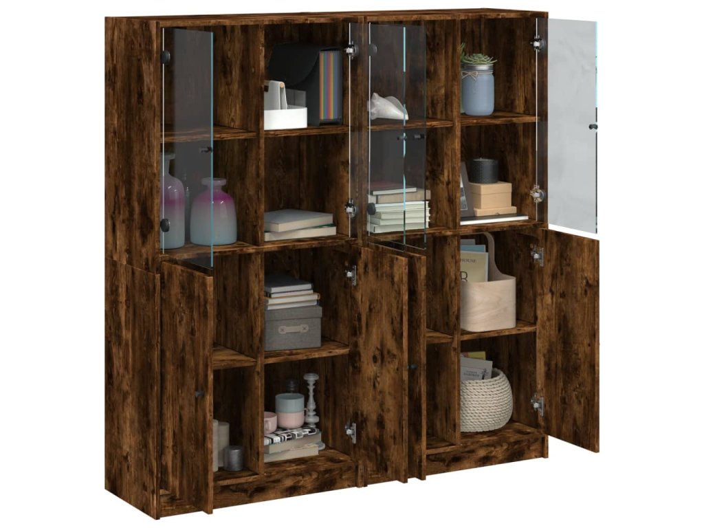 Multidom Knižnica s dvierkami dymový dub 136x37x142 cm kompoz. drevo