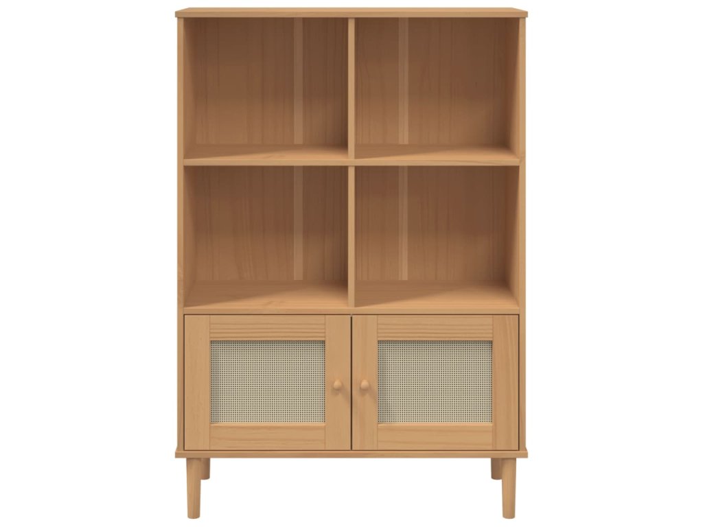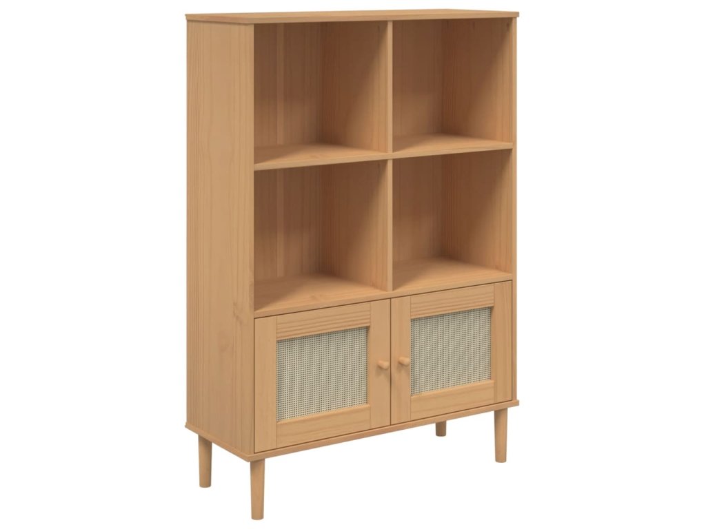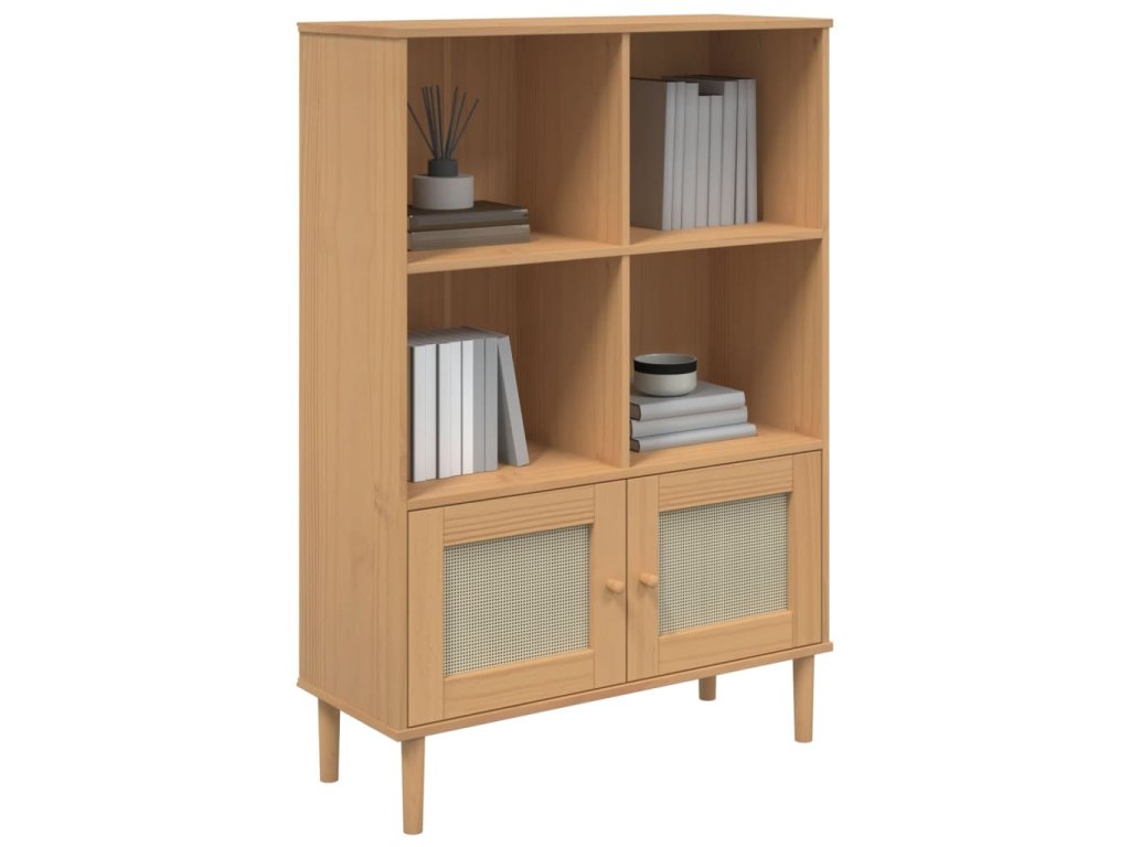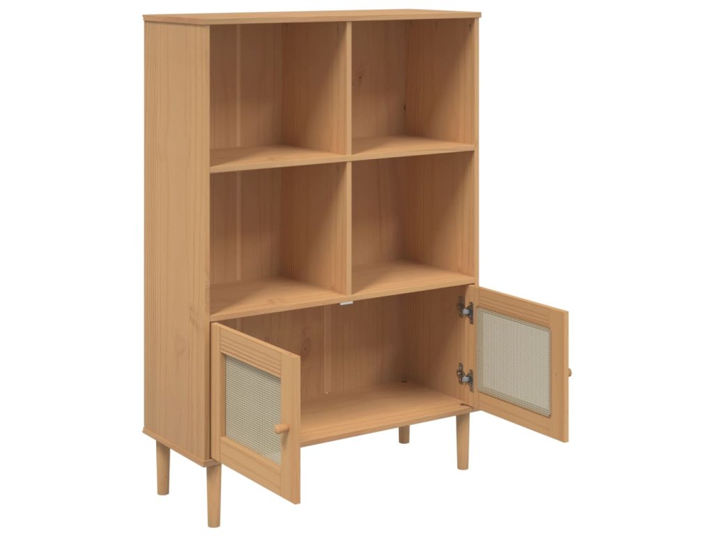 Multidom Knižnica SENJA, ratanový vzhľad, hnedá 90x35x130 cm, borovica
