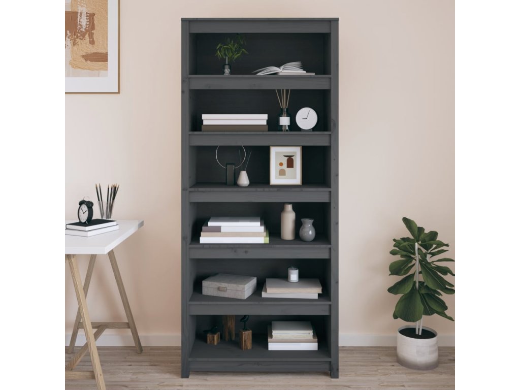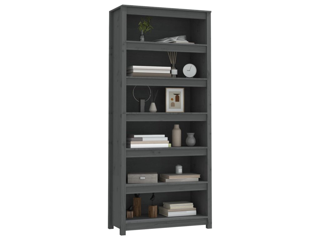 Multidom Knižnica sivá 80x35x183 cm masívna borovica