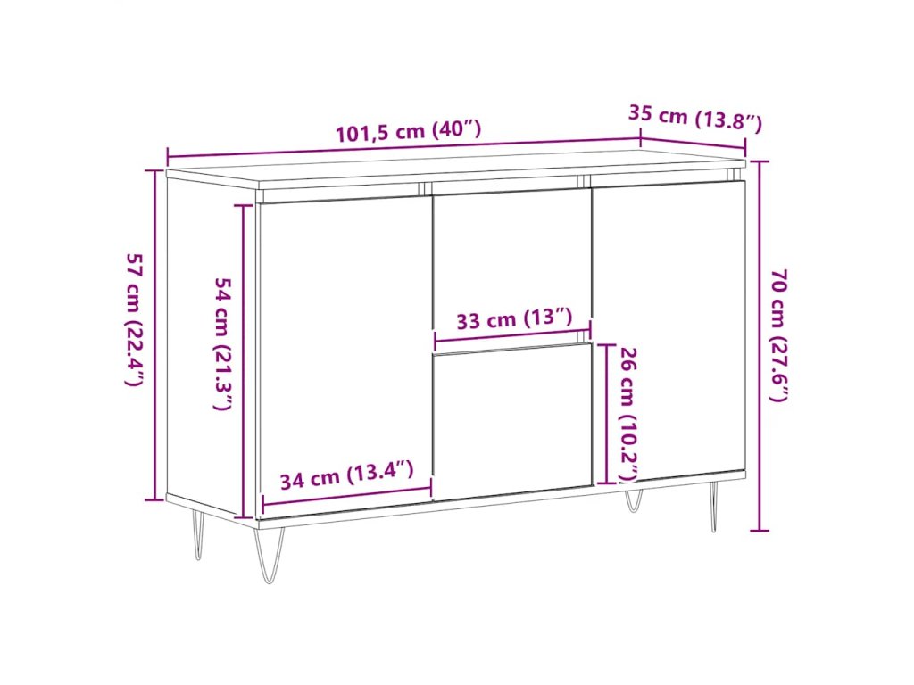 - Železné nohy: Železné nohy bočnej skrinky zaisťujú pevnosť a stabilitu.