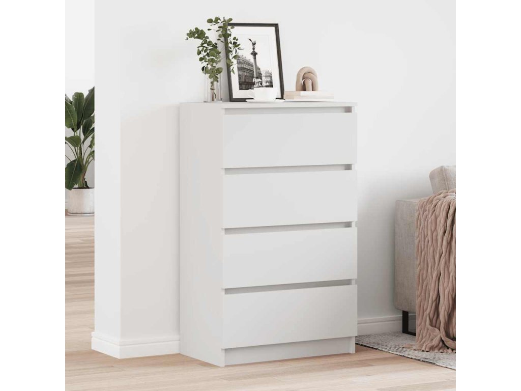 Táto komoda so 4 zásuvkami poskytuje dostatok priestoru na odkladanie kníh, multimediálnych zariadení a ďalších predmetov. Pevná doska je ako stvorená na vystavenie ozdobných predmetov, rámikov s fotkami alebo kvetov v kvetináči. Komodu môžete používať aj ako nízku skrinku či príručnú skrinku. Je vyrobená z prvotriedneho kompozitného dreva, a tak vám bude slúžiť dlhé roky.