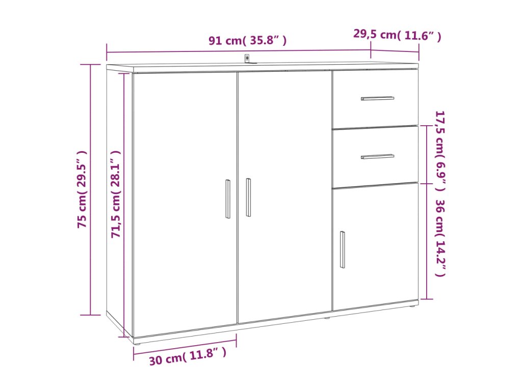 - Rozmery: 91 x 29,5 x 75 cm (Š x H x V)