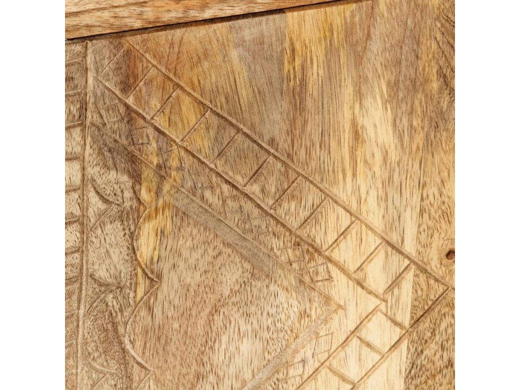 Táto skrinka je vyrobená z masívneho mangovníkového dreva a je veľmi stabilná a odolná. Robustná vrchná doska je ideálna na umiestnenie ozdobných predmetov, ako sú vázy alebo rastliny v kvetináčoch. Skrinka poskytuje dostatok priestoru na úhľadné uloženie rôznych predmetov. Krásne vyrezávané motívy na povrchu dodávajú skrinke jedinečný vzhľad. Každý krok výrobného procesu sa vykonáva s maximálnou starostlivosťou, či už ide o leštenie, natieranie alebo lakovanie. Montáž je jednoduchá.