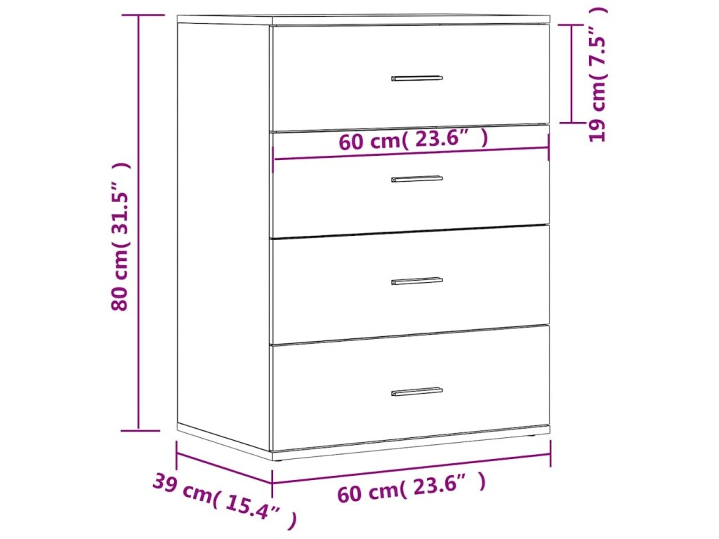 Multidom Komoda, sivá sonoma 60x39x80 cm, kompozitné drevo