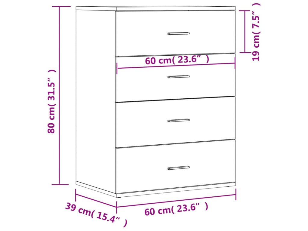 Multidom Komoda, tmavý dub 60x39x80 cm, kompozitné drevo