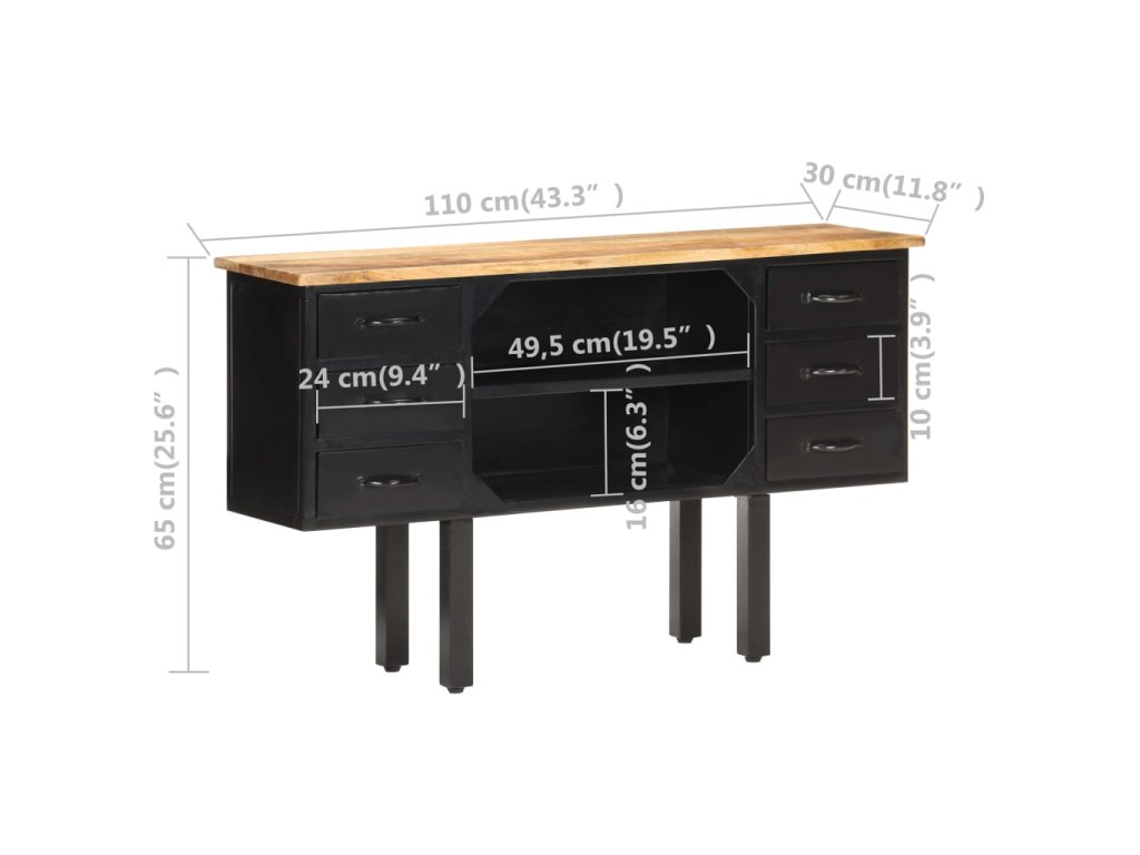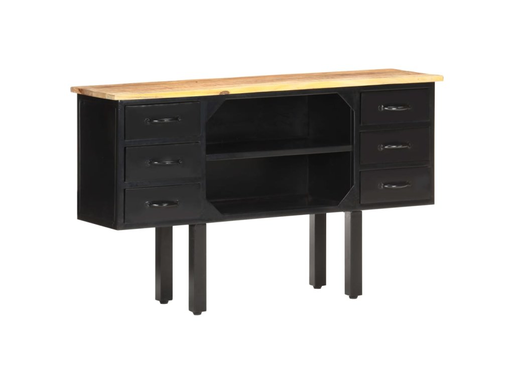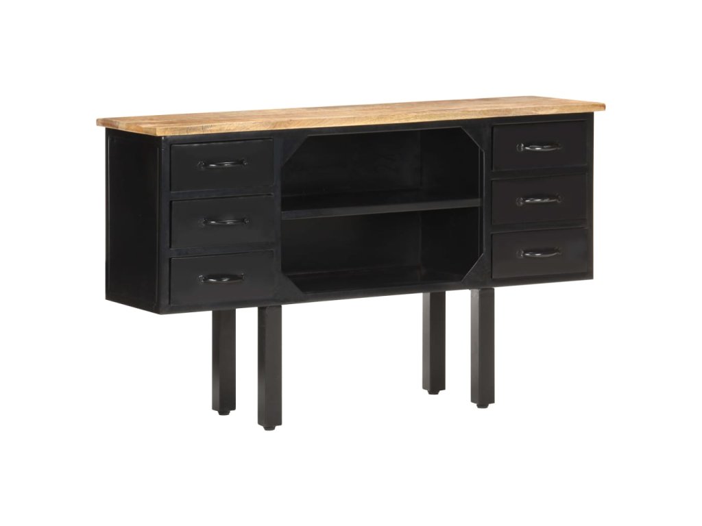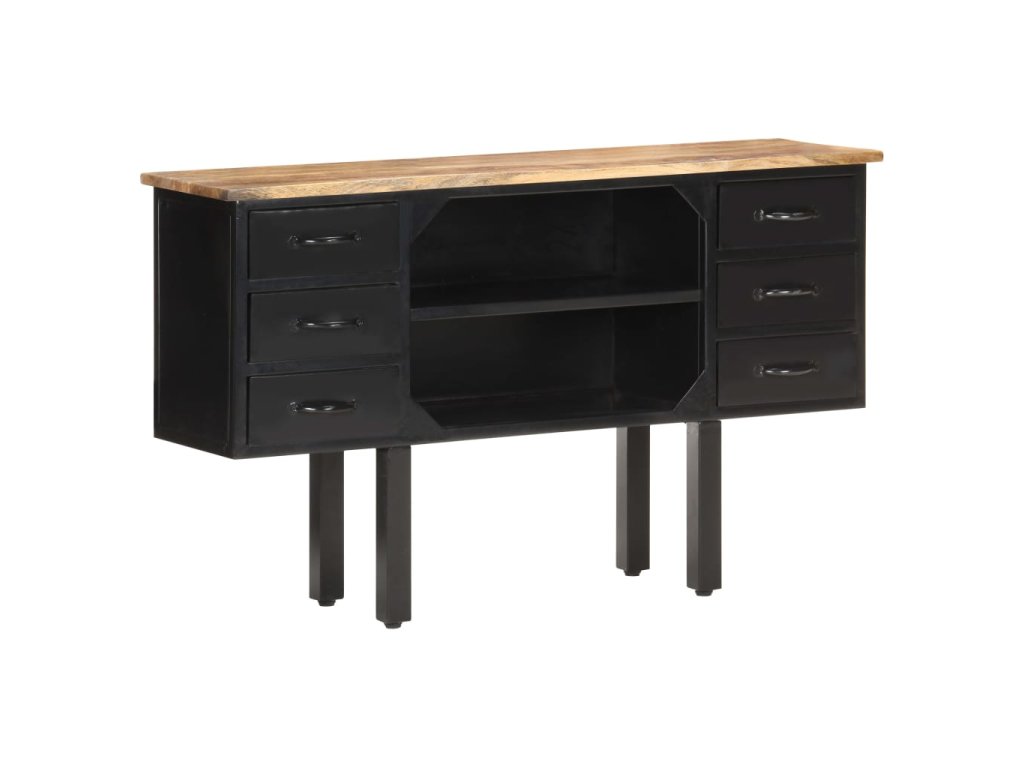 Táto skrinka je vyrobená z masívneho hrubého mangovníkového dreva a je stabilná a odolná. Vďaka krásnej textúre dreva je každý kus nábytku výnimočný a trochu odlišný od ostatných. Komoda má pevnú dosku, na ktorú môžete umiestniť košíky s ovocím, vázy alebo iné dekoratívne predmety. Táto nízka skrinka má 6 zásuviek a 2 priehradky, ktoré poskytujú dostatok priestoru na uloženie rôznych predmetov.