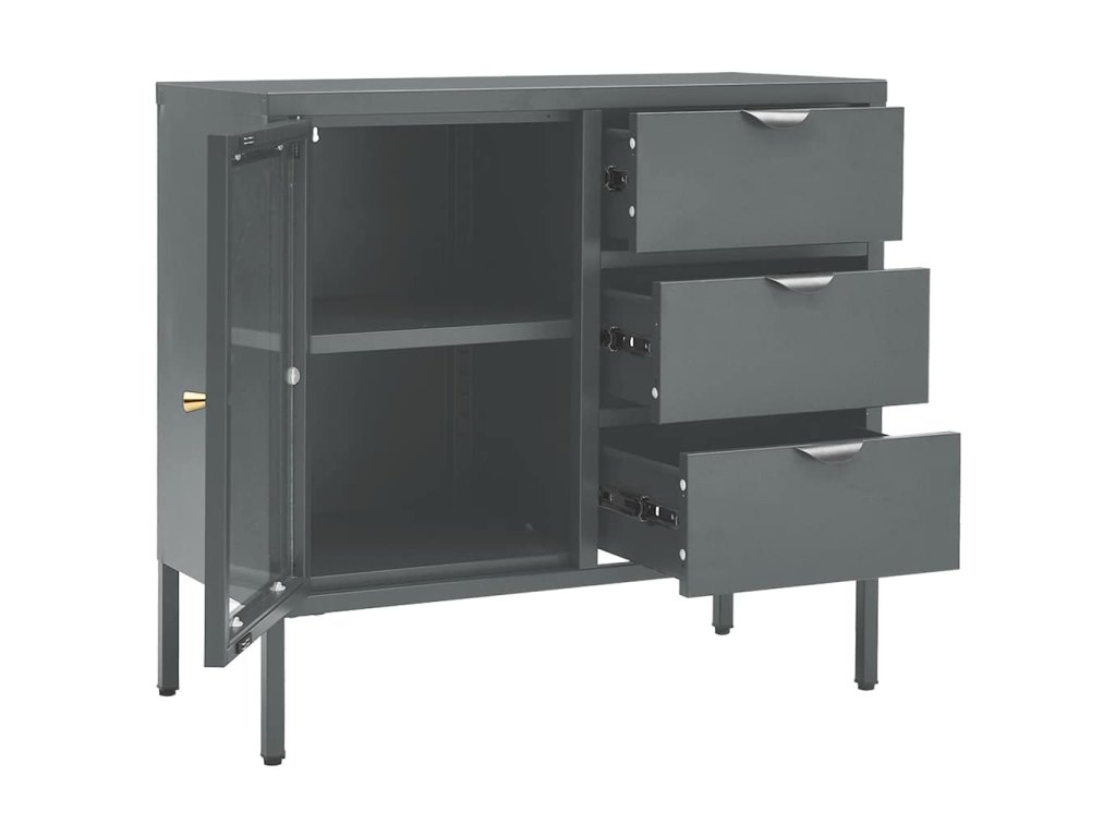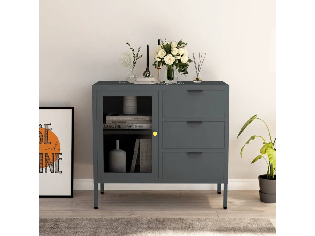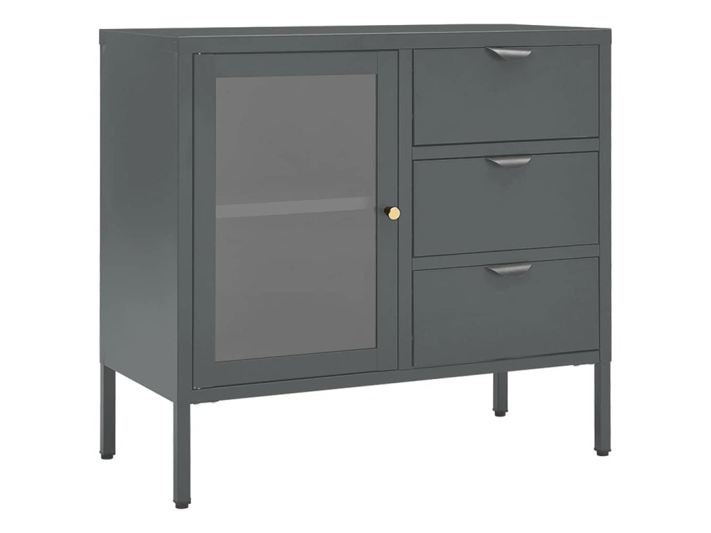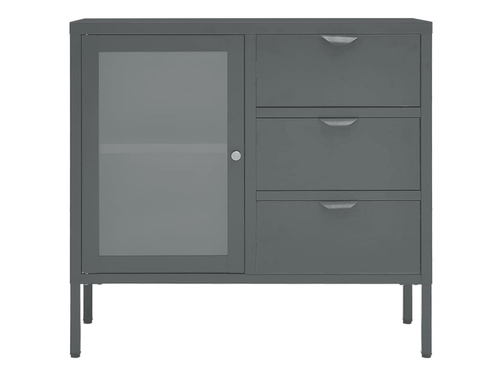 Multidom Komoda antracitová 75x35x70 cm oceľ a tvrdené sklo