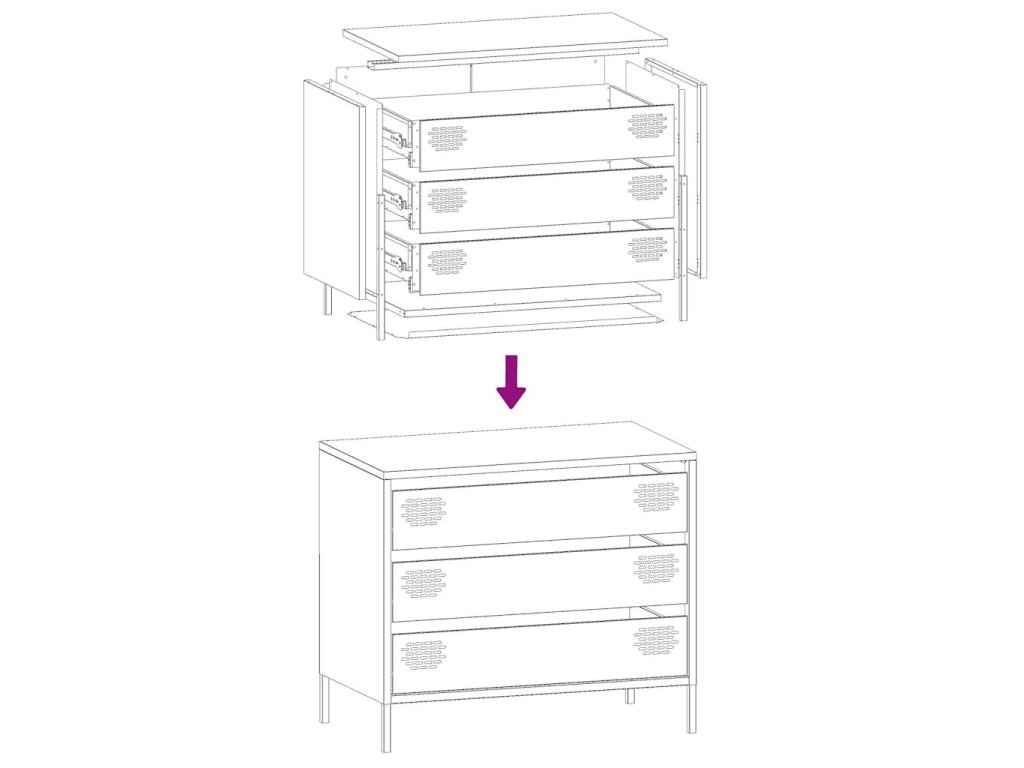 - Dostatok úložného priestoru: Skrinka so zásuvkami ponúka dostatok úložného priestoru na uloženie rôznych potrieb dobre organizovaných a na dosah ruky.