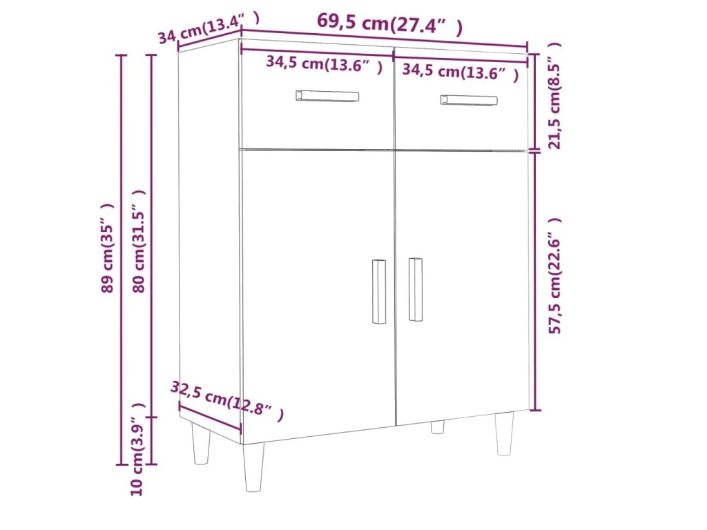 - Rozmery: 69,5 x 34 x 89 cm (Š x H x V)